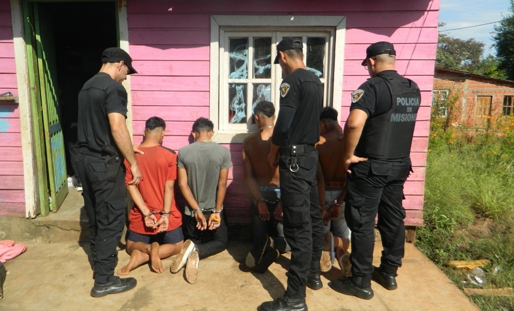 La policía de la Unidad Regional IX, con base en Jardín América, allanó dos viviendas en el barrio La Tosquera y detuvo a seis personas, cuatro de ellos menores de edad, como sospechosos de administrar un “aguantadero” de elementos sustraídos y por el ataque a un efectivo a punta de machetes y presuntamente con un arma de fuego.