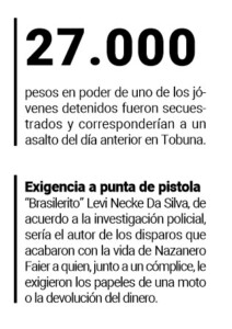 Los investigadores de San Pedro en tanto, cotejaron sus datos y lo vincularon a “Brasilerito” y su cómplice de 18 años, misionero, como los que habían cometido sendos robos calificados durante los últimos días, el más violento en Tobuna el viernes del que huyeron con 50 mil pesos en efectivo.