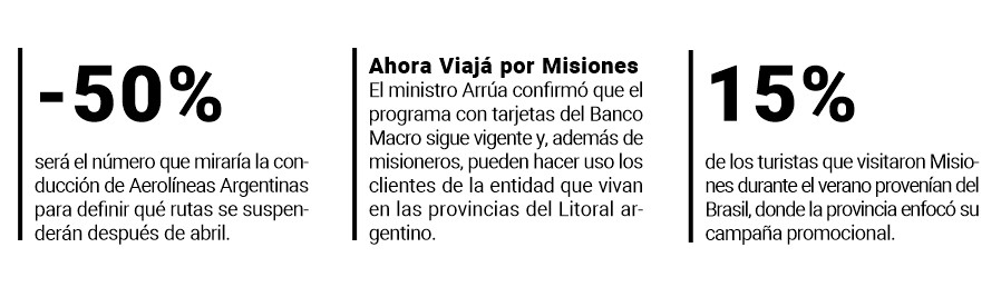 El ministro de Turismo de la provincia, José María Arrúa, contó que hace algunos días mantuvo un encuentro con autoridades de Aerolíneas Argentinas, donde le informaron de la decisión del recorte que sería con posterioridad a la Semana Santa, fecha en la que se espera un buen flujo de turistas a Posadas y Puerto Iguazú.