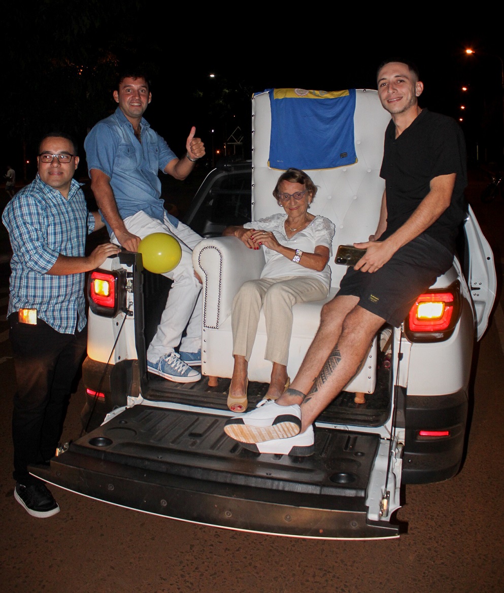 La fiesta se inició con una gran caravana que salió de su casa, dio vueltas por el pueblo y culminó en el club donde tuvo lugar este emotivo encuentro, del que participaron sus hijos: Antonio, Jorge, Sara, Hugo, Mirta, Elvio y Mercedes -su nieta Evelyn estuvo en lugar de José Aníbal, que partió hace algunos años-, nietos, bisnietos y tataranietos, además de otros familiares, amigos y vecinos, que acompañaron a la homenajeada hasta altas horas de la madrugada.