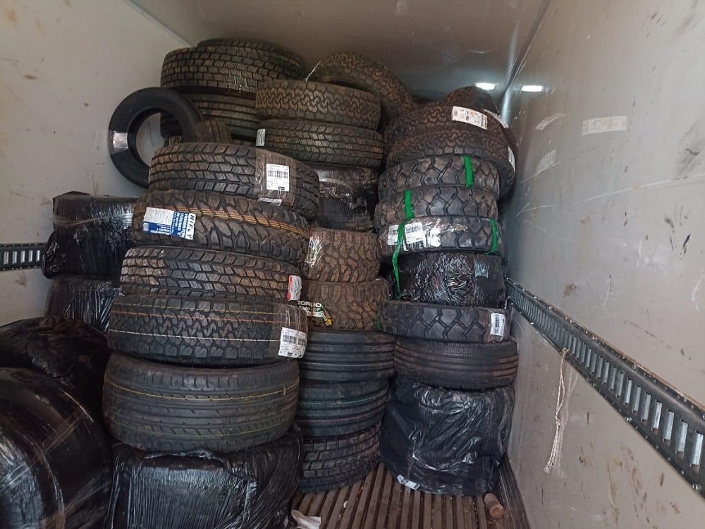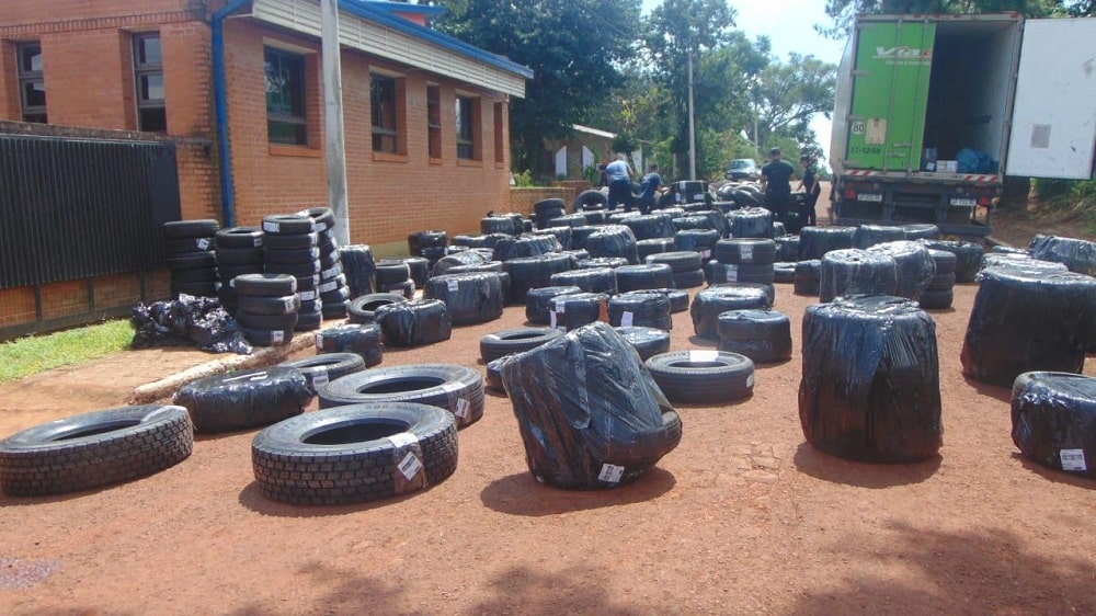 Dentro del semirremolque marca Bonano, del camión Iveco, se descubrieron neumáticos de distintos tamaños para camiones, camionetas y automóviles, todos sin avales aduaneros. Se presume que entraron por pasos clandestinos a través del río Paraná a la altura de Puerto Esperanza.