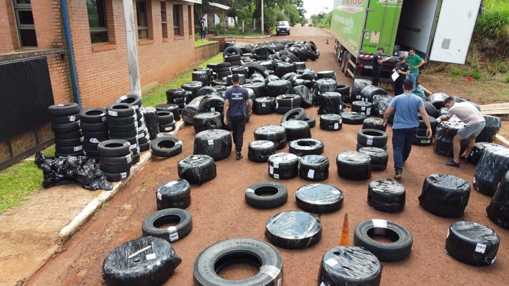 Dentro del semirremolque marca Bonano, del camión Iveco, se descubrieron neumáticos de distintos tamaños para camiones, camionetas y automóviles, todos sin avales aduaneros. Se presume que entraron por pasos clandestinos a través del río Paraná a la altura de Puerto Esperanza.