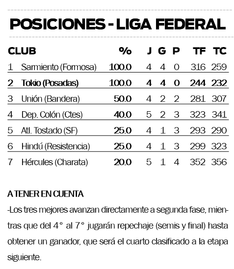 En efecto, tanto Tokio como Sarmiento llegan agrandados al juego de esta noche. Los posadeños ganaron los cuatro partidos previos, ante Hindú (64-62), Atlético Tostado (60-56), Deportivo Colón (45-44) y Hércules de Charata (75-70). Y claro, la misma situación le cabe al Auriazul formoseño, que en su periplo por la Liga Federal 2024 acumuló victorias frente a Hindú (92-81), Hércules (76-62), Unión de La Bandera (67-54) y Colón (81-62).