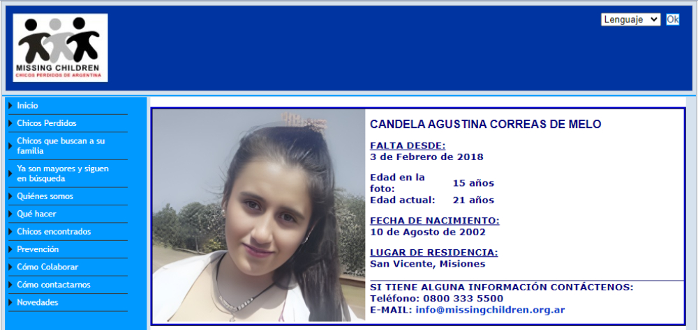 Hoy por hoy en la página de niños perdidos aparecen 76 chicos, entre los que se encuentran Candela y David Capli, de San Ignacio, extraviado desde 2021. En otra pestaña, se puede encontrar a los 38 chicos que desaparecieron siendo menores y hoy son mayores de edad.