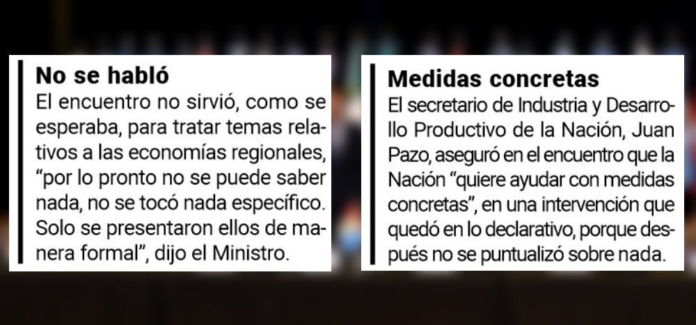 Presente en el encuentro, el ministro del Agro, Facundo Sartori, se llevó una agenda con los reclamos locales, pero volvió con más indefiniciones: “No se habló de nada”, sostuvo.