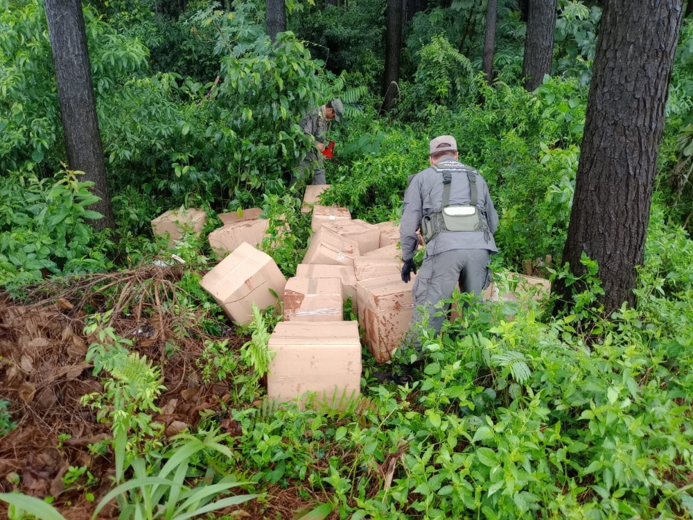 Efectivos del Escuadrón 11 “San Ignacio” realizaban recorridas preventivas en distintos puntos de la localidad de Puerto Rico y advirtieron en cercanías de una plantación de pinos una serie de cajas almacenadas y disimuladas con algunas ramas. Se trataba de una carga de marihuana “enfriándose” en una zona aledaña al barrio Maipú.