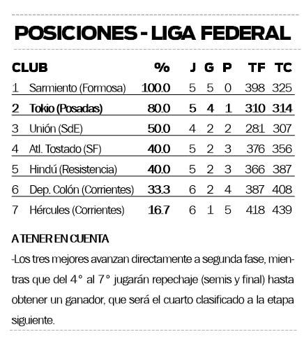 Más allá de la caída en Formosa, Tokio acumula un registro para nada despreciable de cuatro victorias y una derrota. Enfrente, los santiagueños llegan a Posadas con dos triunfos y dos caídas, aunque motivados por el triunfo que consiguieron en su última presentación, el 15 marzo y en Bandera, ante Atlético Tostado (81-78).