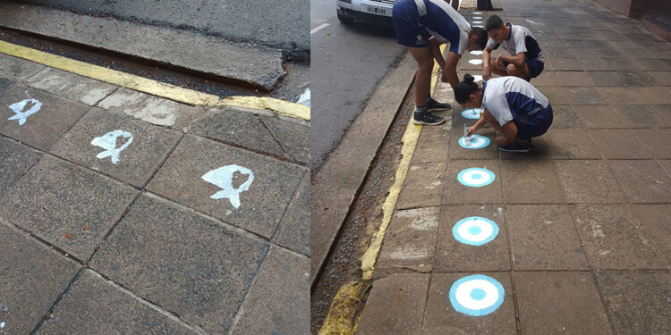Es que ayer, en el marco de la marcha que se llevó a cabo en Posadas, algunos participantes pintaron en las veredas de distintas calles de la ciudad -más precisamente alrededor de los sitios identificados como ex centros de detención clandestinos- el clásico pañuelo blanco, símbolo que representa a las Abuelas de Plaza de Mayo.