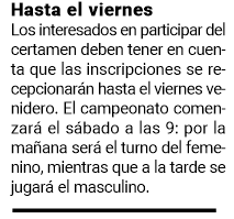 Vale resaltar que las inscripciones ya están abiertas y se cerrarán el viernes venidero. El valor por jugador es de 5.000 pesos, en el caso de un equipo conformado por cuatro jugadores; y de 6.700 pesos, en el caso de tres jugadores.