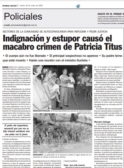 Ella siempre se las arreglaba para encontrarse con él. Para no disgustar a sus padres, Patricia Alejandra Titus (24) les decía que iría a visitar a sus amigos o ponía algún otro pretexto, aunque en realidad esas salidas siempre tenían el mismo destino: Eugenio de Jesús Lemes (34).