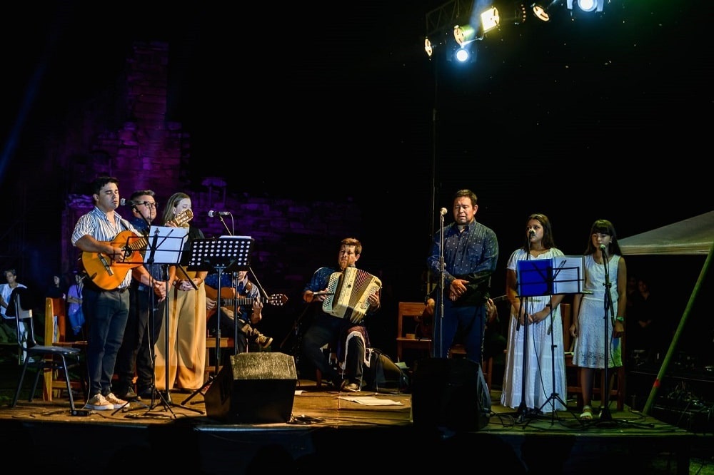 El cierre musical provino de la mano del popular conjunto “Los de Imaguaré”, con las voces de Julio y Nicolás Cáceres cautivaron al público con una selección de temas especiales para la velada. “En los comienzos del grupo, mucho nos dedicamos a la prédica de los valores jesuíticos, de la fe, y hoy tengo la dicha de haber sido bendecido con la invitación para cantar en este lugar único”, comentó al público Julio Cáceres, previo a brindar una notable versión chamamecera del Padre Nuestro. Por su parte, su hijo Nicolás, brindó una emotiva interpretación de la pieza clásica del cancionero católico: Tú has venido a la orilla.
