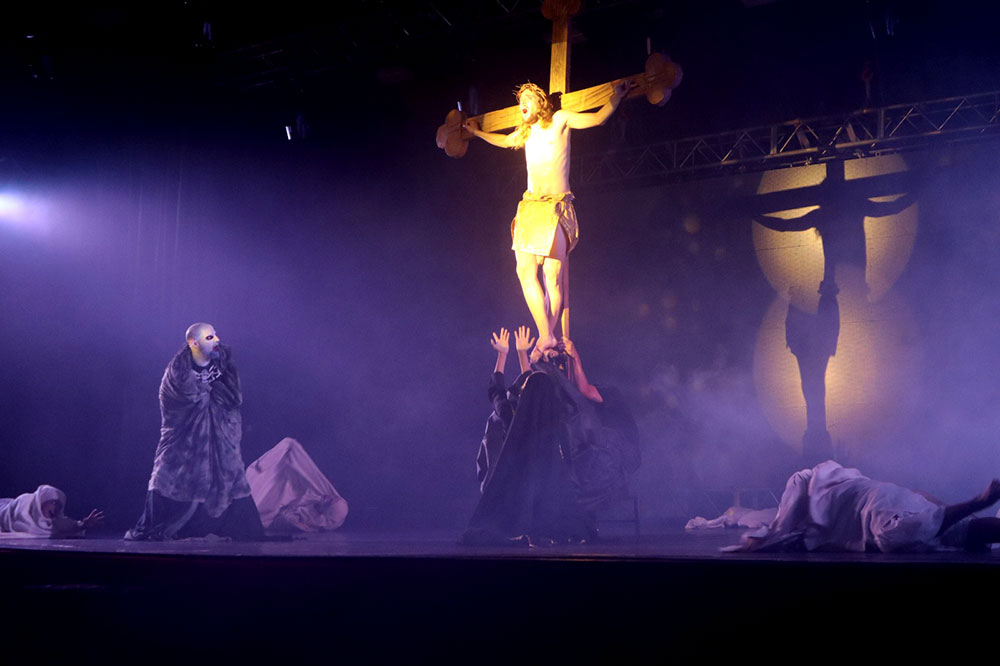 Ayer se destacó la presentación de “Arcano de Viernes Santo” por el maestro Luis Marinoni, una obra que combinó danza, canto, música y vestuarios increíbles, emocionando al público, más de dos mil personas que los ovacionaron de pie. Para esta gran puesta que nucleó a más de cien personas, Marinoni convocó al Ballet del Parque del Conocimiento, a la Compañía de Arte, al Ballet Al compás del Corazón, al Instituto Idear a integrantes de la Parroquia Santa Teresita y del Colegio Espíritu Santo y a la cantante Belén Banach.