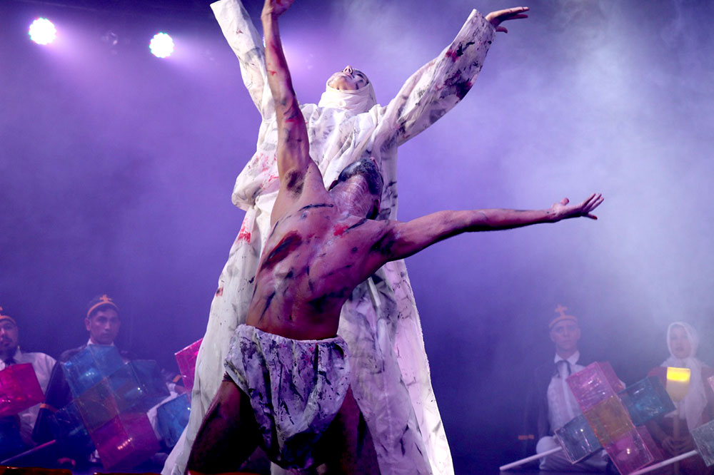 Ayer se destacó la presentación de “Arcano de Viernes Santo” por el maestro Luis Marinoni, una obra que combinó danza, canto, música y vestuarios increíbles, emocionando al público, más de dos mil personas que los ovacionaron de pie. Para esta gran puesta que nucleó a más de cien personas, Marinoni convocó al Ballet del Parque del Conocimiento, a la Compañía de Arte, al Ballet Al compás del Corazón, al Instituto Idear a integrantes de la Parroquia Santa Teresita y del Colegio Espíritu Santo y a la cantante Belén Banach.