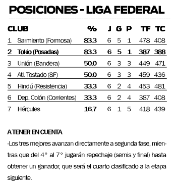 La victoria no solo le permitió a los dirigidos por Agustín Ponissi acumular su segundo triunfo consecutivo tras el 77-74 sobre Unión de Bandera (Santiago del Estero), sino que también lograron mantenerse en lo más alto de la tabla junto a Sarmiento de Formosa, el otro líder que tiene el grupo B. Además, Tokio sostuvo también el invicto en condición de local.