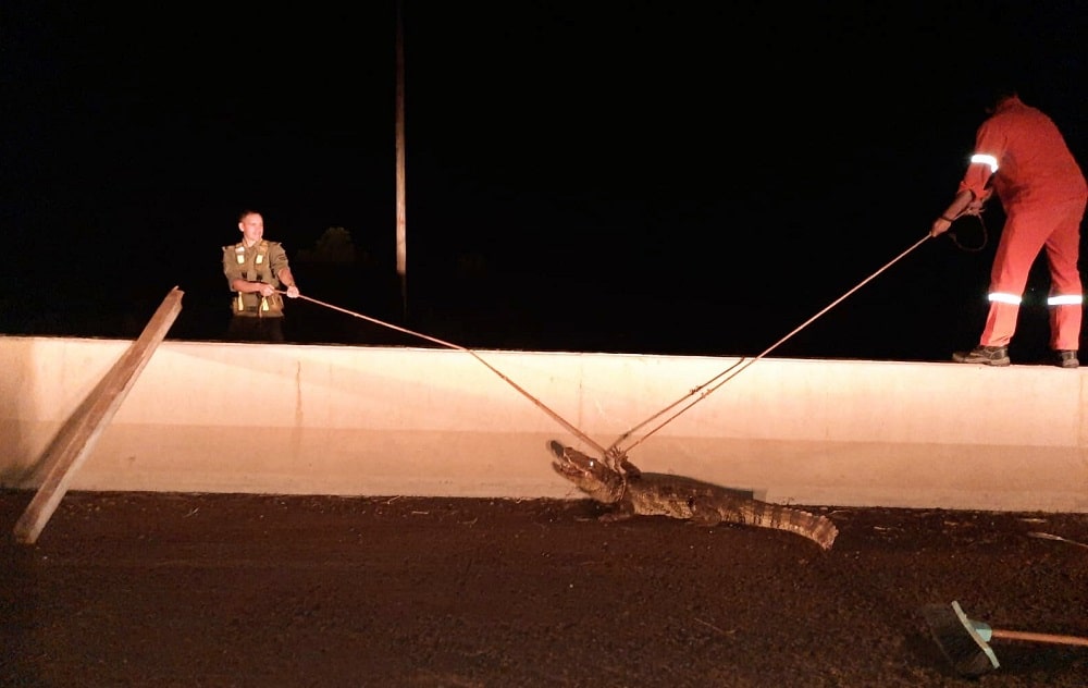 Efectivos pertenecientes al Escuadrón 50 “Posadas” de Gendarmería Nacional que desempeñaban controles sobre la ruta nacional 105 en Misiones tuvieron que realizar una inesperada intervención el sábado por la noche, cuando fueron alertados de que un yacaré overo se desplazaba despreocupadamente sobre la cinta asfáltica en la zona.