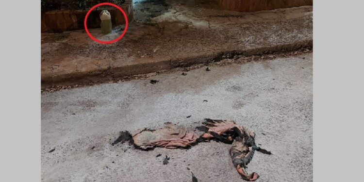 En el lugar del hecho, se secuestró un bidón de 5 litros con líquido inflamable y restos de prendas.