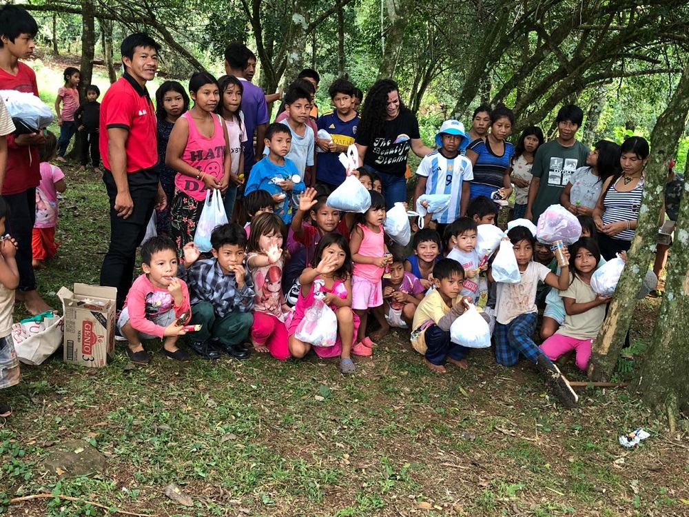 Cuando fue a El Soberbio le presentaron a los maestros que trabajan en el establecimiento y la llevaron a la colonia para que conociera a los futuros beneficiados porque ese día no tenían clases. “Cruzamos un puente, una bajada terrible, un arroyo y cuando llegamos nos esperaban en ronda. Recibieron los dulces, y después lo demás”.