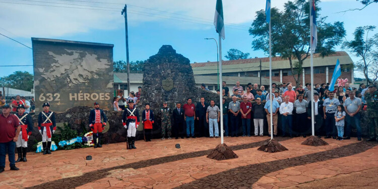 La jornada contó con la Santa Misa, la Bendición de las 9 Antorchas (por los 9 combatientes de la provincia de Misiones caídos en batalla), y con el despliegue de la bandera argentina hasta el Monumento a los Veteranos y Caídos ubicada sobre la avenida homónima.