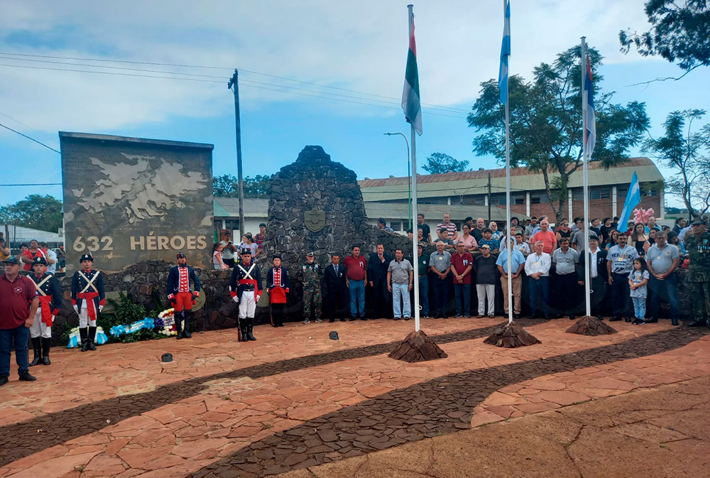 La jornada contó con la Santa Misa, la Bendición de las 9 Antorchas (por los 9 combatientes de la provincia de Misiones caídos en batalla), y con el despliegue de la bandera argentina hasta el Monumento a los Veteranos y Caídos ubicada sobre la avenida homónima.