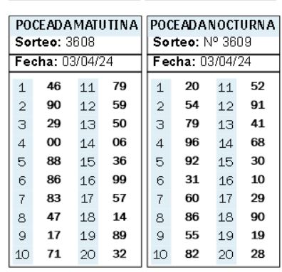 Resultados Poceada nocturna hoy en Misiones, jueves 4 de abril