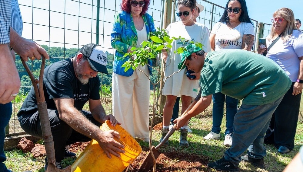 Eldorado, la tercera parada del viaje, sobre la Ruta Nacional 12, a la altura de la avenida Paraguay, junto a la vice intendenta, Lorena Cardozo y el músico Fausto Rizzani, se plantó un lapacho en el predio de la casilla de informes turísticos de la ciudad.