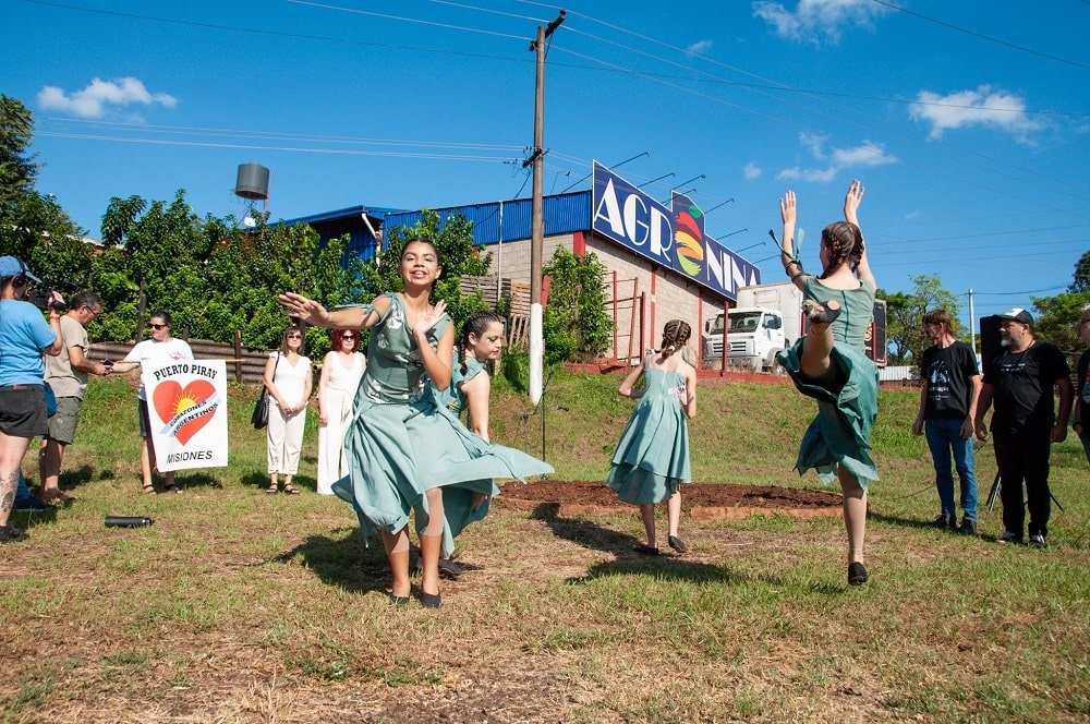 Un grupo de bailarinas del Centro Integral de Danzas Cid hizo un cuadro preparado para la ocasión al son de la canción Lapacho en tanto que la comitiva entregó una placa conmemorativa que será instalada en los próximos días. Para el cierre, junto Rizzani y Cecilia Pahl, Joselo Schuap y acompañantes cantaron juntos Cosechero.