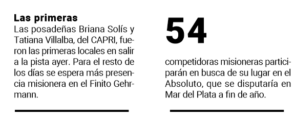 Son 54 las misioneras que participarán del certamen en busca de su lugar en el Absoluto. Ayer fue el turno de dos posadeñas: Briana Solís y Tatiana Villalba del CAPRI salieron a patinar. Para hoy se espera más presencia misionera.