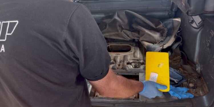 Agentes aduaneros apostados en el puente internacional San Roque González de Santa Cruz, que une esta ciudad con Encarnación (Paraguay), detectaron más de 16 kilogramos de cocaína con el sello del “Patrón del Norte” ocultos en un automóvil que intentaba ingresar al país.
