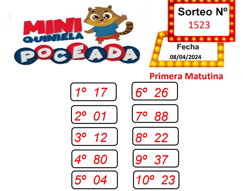 Un afortunado apostador se hizo esta mañana del primer premio del sorteo matutino de la Mini Poceada Misionera, el tradicional juego que fiscaliza el Instituto Provincial de Loterías y Casinos (IPLyC).