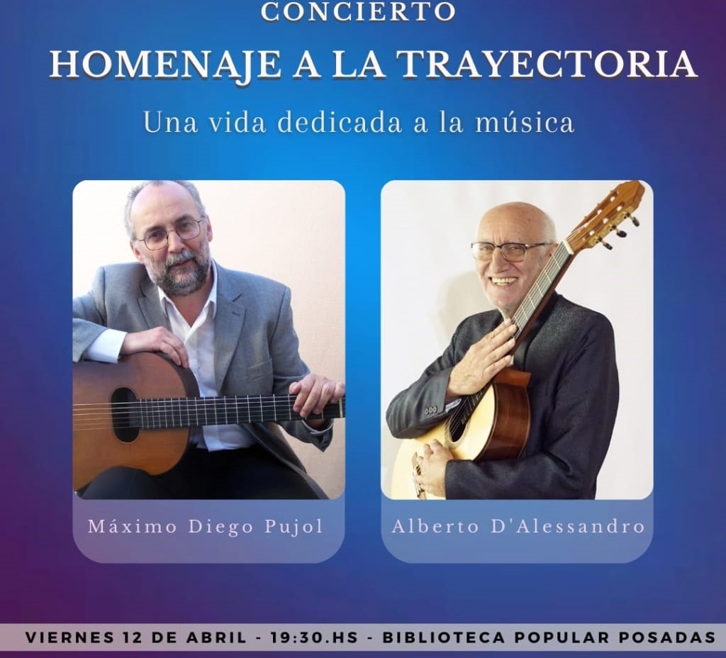 El viernes 12, a las 19,30, llega la Fundación Más Vida, invita a un nuevo Ciclo de Concierto de Guitarras Clásicas con la presentación de los maestros Máximo Pujol y Alberto D’Alessandro.