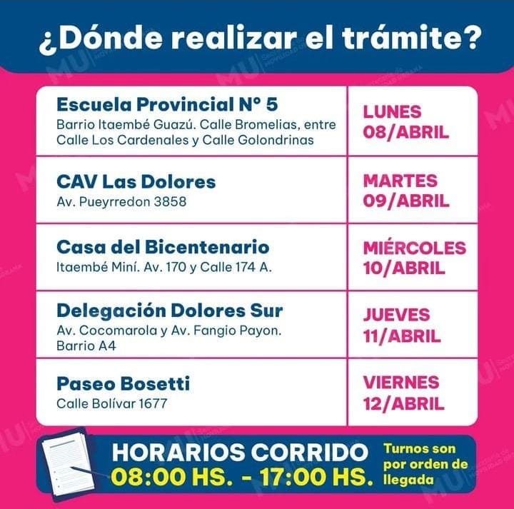 Además, en Posadas, hay puntos móviles donde se pueden presentar los papeles. Esta semana, estarán ubicados en: