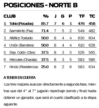 En cuanto al único representante misionero en la divisional, el equipo dirigido por Agustín Ponissi se mantiene en lo más alto del clasificador. Y es que, pese a la derrota que sufrió tres partidos atrás frente a Sarmiento en un mano a mano entre líderes, luego los formoseños cayeron y Tokio se recuperó en gran nivel para derrotar primeramente a Unión y Juventud de Bandera (Santiago del Estero), por 77-74; y luego a Deportivo Colón de Corrientes, por 89-70, en ambos casos en el Jorge Yamaguchi.