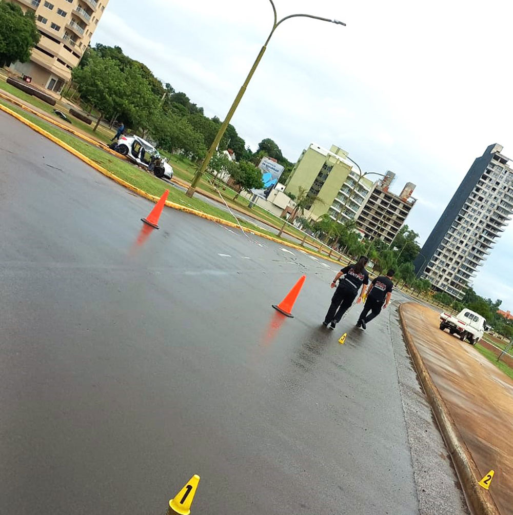 Tras la colisión del automóvil, la camioneta sin ocupantes subió a la vereda del carril sobre la costa del río y frenó entre 25 y 30 metros más adelante. Mientras que el Peugeot salió despedido hacia la izquierda, volcó y finalizó en la vereda opuesta y a una distancia similar a la mencionada en cuanto a la utilitaria. La llovizna del momento también se sostiene como factor en el accidente de manera destacada sobre el derrape sin posibilidad de eficacia en el frenado.