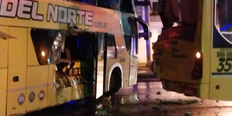Una colisión entre dos colectivos, uno de una empresa de larga distancia y el otro del sistema de transporte urbano, dejó como saldo nueve personas heridas de diferente consideración.