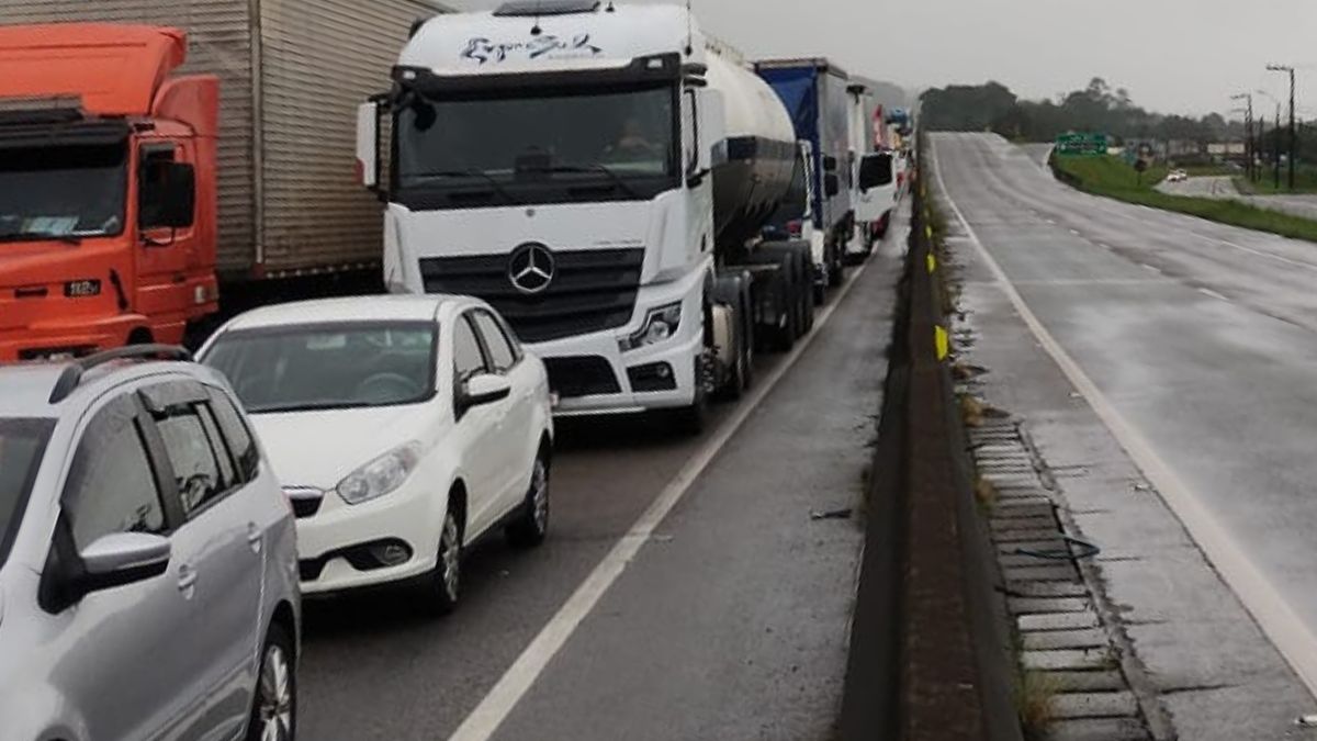 El tránsito en la BR 101, ruta habitual hacia Camboriú y otras playas catarinenses, se encuentra interrumpido desde el sábado por la noche.