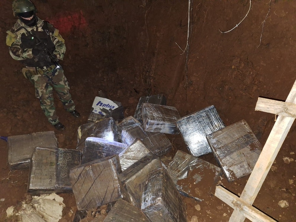 Efectivos pertenecientes a la Unidad Especial de Operaciones en Monte “Bernardo de Irigoyen”, quienes formaban parte de las tareas de rastrillaje, irrumpieron en el domicilio y hallaron un sótano improvisado en el que hallaron más paquetes, totalizando 912, los cuales emanaban un fuerte olor similar al de la marihuana.