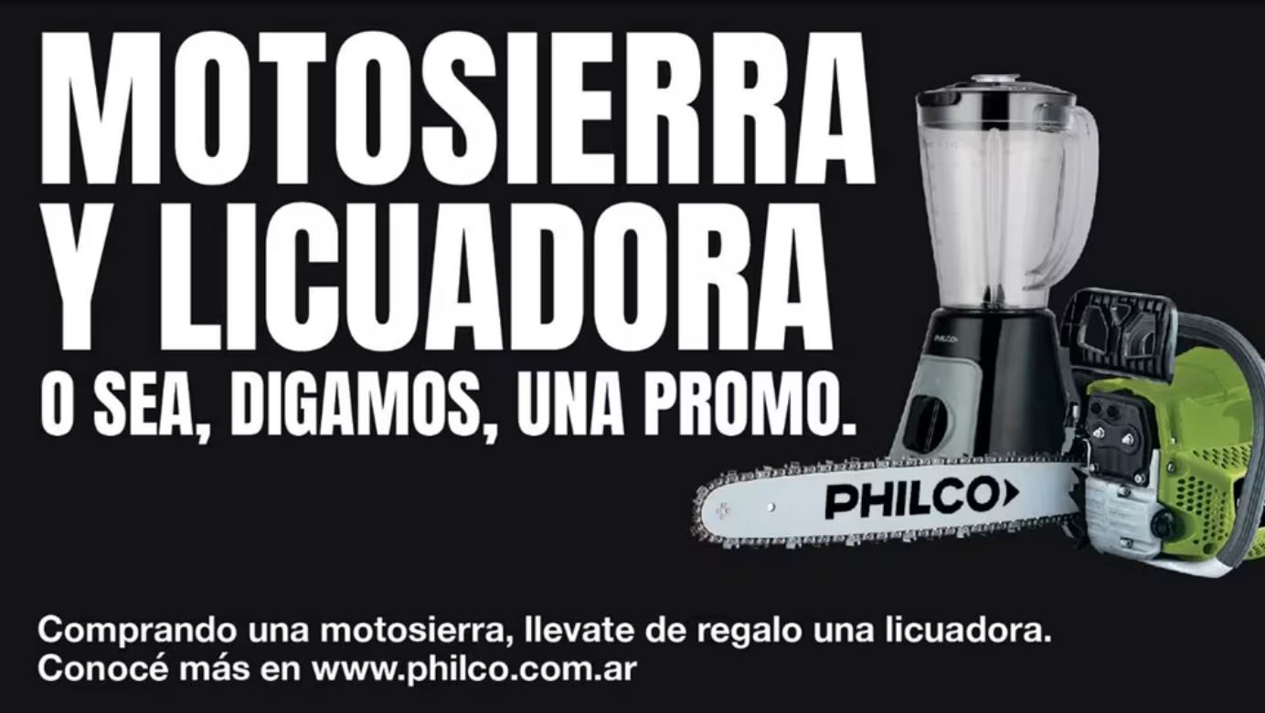 La reconocida marca de electrodomésticos Philco lanzó una controvertida promoción bajo el nombre “Motosierra & Licuadora”, en la cual ofrece una licuadora de regalo con la compra de una motosierra de la misma marca. Esta iniciativa causó revuelo debido a su clara referencia a dos elementos emblemáticos de la política económica actual.