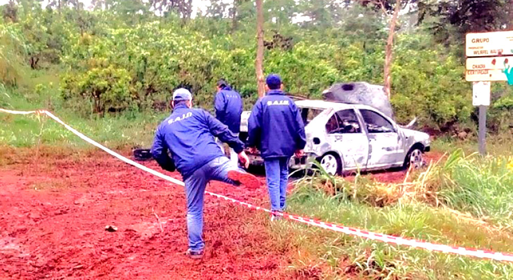 PARAJE El CHATÓN. En jurisdicción de Leandro N. Alem hallaron el Volkswagen Bora quemándose con la víctima fatal en su interior.