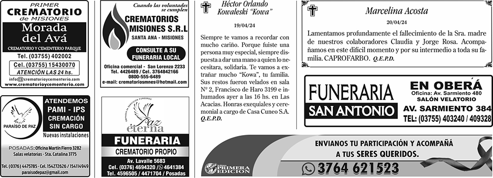 Fúnebres del 21 de abril de 2024