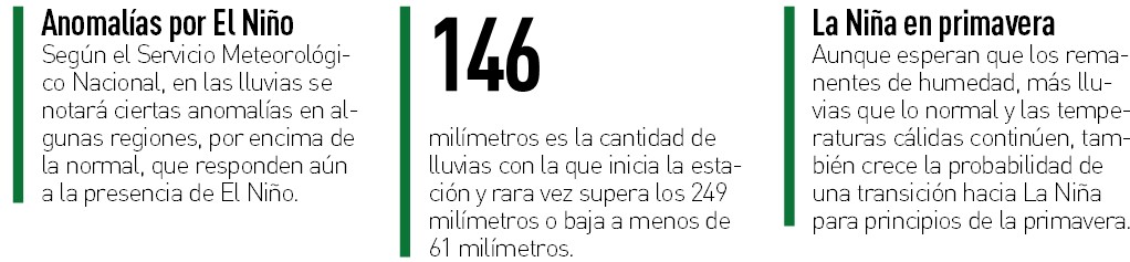 Si bien aún el remanente de “El Niño” continuará presente, las lluvias que comenzarán a ser espaciadas y de montos más bajos en los próximos meses, incluso con vastas regiones del país donde el clima seco comenzará a ganar protagonismo.