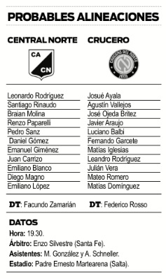 Claro que no será fácil porque adelante estará Central Norte de Salta, un rival que pelea en la parte alta de la tabla. El duelo se cumplirá en el estadio Padre Ernesto Martearena, a partir de las 19.30, y será dirigido por el árbitro santafesino Enzo Silvestre.