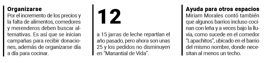 Asimismo, precisó que cocinar se vuelve una tarea complicada porque “con los precios de hoy, no podemos comprar bolsas de papa, cebollas o zanahorias. Es muy triste y tampoco queremos hablar mal del Gobierno ni de nadie, pero es la realidad que vivimos”.