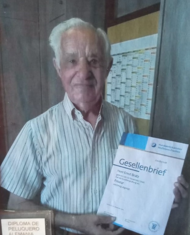Su papá trabajaba en las minas de sal. Cuando Ernesto cumplió 15 años debió hacer un test para elegir el oficio a seguir. Resultó que podría ser panadero o peluquero, su padre le sugirió que se inclinara por el segundo oficio, porque le dijo que para ser panadero debía levantarse muy temprano ya él le gustaba dormir, entonces no le convenía. Bien entonces, sería ¡Peluquería! Pero ¿dónde… dónde? Era difícil ingresar a alguna academia. Su tío Karl era amigo del dueño de una academia, pero ya no tomaba más alumnos. El tío pidió que fuera una excepción y Ernesto fue un alumno ejemplar. Con la guerra, Vogler, el dueño, también tuvo que incorporarse a las filas. Ernesto, aun siendo el último aprendiz, era para el dueño, la persona de máxima confianza. Le fueron entregadas las llaves y quedó a carga del negocio. Ernesto, no fue convocado al frente de batalla, por su edad y físico pequeño lo respetaron, pero debía incorporarse como bombero. Ayudó en hospitales e hizo lo necesario. Una noche, casi al finalizar la guerra, bombardean Heilbron con luminarias incendiarias. No quedó nada en pie. Al día siguiente, tuvo que apilar como ladrillos a los muertos quemados. Fue un panorama jamás visto. Al escuchar las alarmas, algunas personas que conocíamos, se refugiaron en túneles subterráneos y se salvaron, increíblemente.