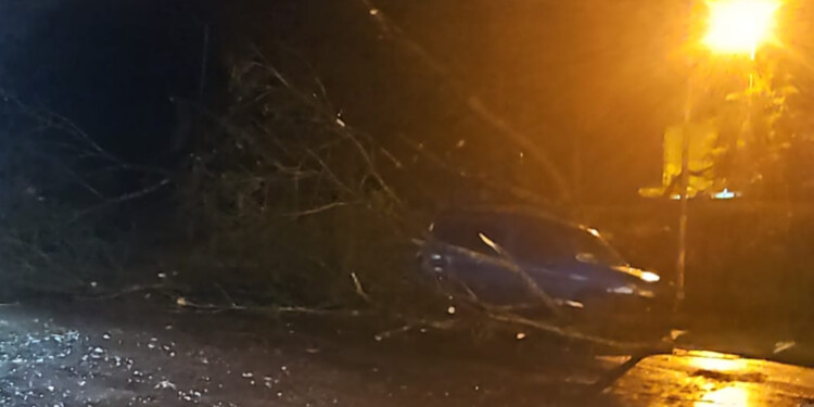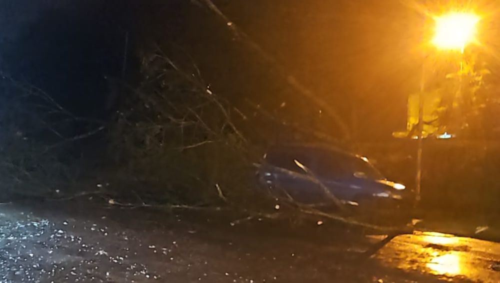 El hecho ocurrió a las 6.20 de este martes sobre la colectora oeste de le ruta nacional 12, a la altura del kilómetro 6. En el lugar, circulaba Citroën Berlingo con cuatro ocupantes que, a raíz del temporal, fue golpeado por un árbol de grandes dimensiones.