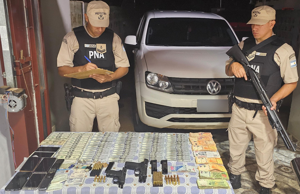 Los efectivos también secuestraron más de 40 celulares, dispositivos de almacenamiento digital, equipos de comunicación satelital, cámaras de vigilancia, un detector de billetes, una balanza digital y tres caballos. Además, la Autoridad Marítima incautó más de ocho millones de pesos argentinos en efectivo, cerca de 10.000 dólares, reales y guaraníes.