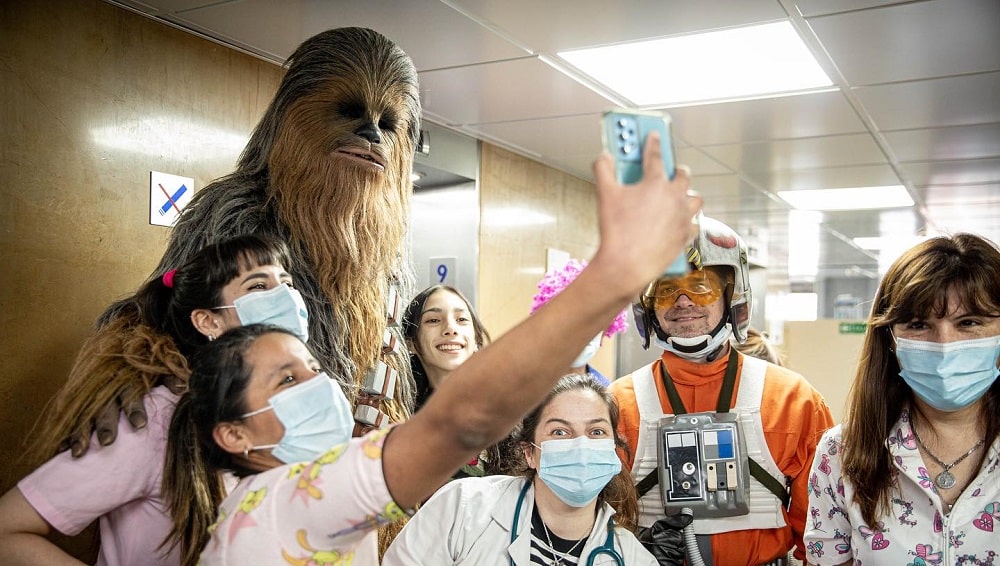 En esa etapa de internación, Rodrigo estaba recorriendo los pasillos del Garrahan cuando se encontró con personas disfrazadas de personajes de Star Wars, saga de películas de la cual también era fanático. “Primero no podía entender que hacían allí y segundo me parecían increíbles los trajes. Más tarde, investigando, me enteré que eran personajes aprobados por Disney y Lucas Film”.