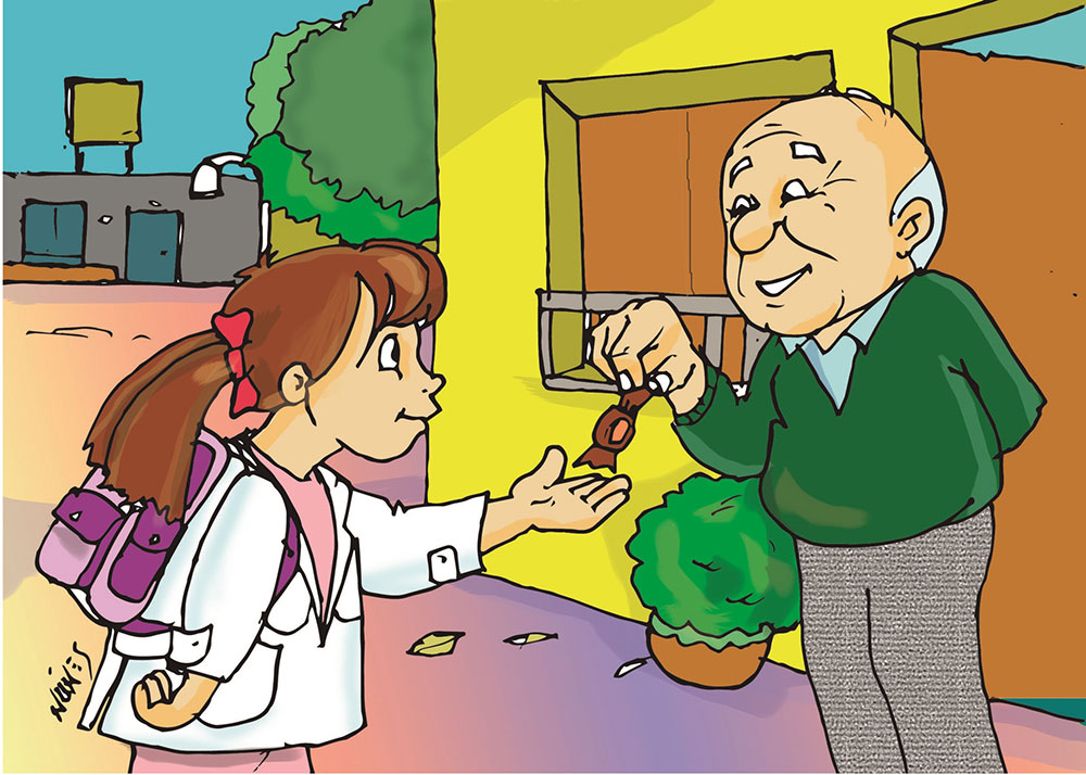 “Cada mañana el abuelito me esperaba con su sonrisa grande y ‘amarilla’, con los caramelos que tanto me gustaban. Yo los agarraba contenta. Los comía en los recreos. A veces no aguantaba: mientras la Mae estaba de espaldas en el pizarrón los desenvolvía cuidadosamente para no hacer ruiditos.