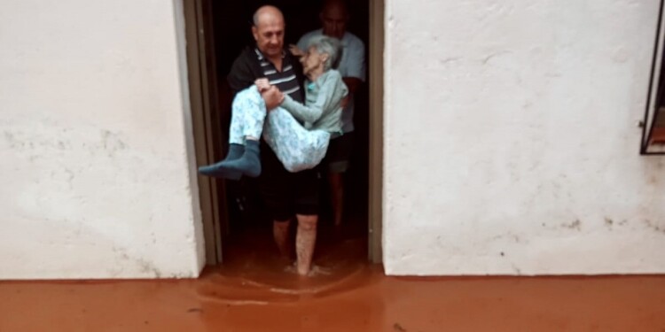 El domingo por la tarde, las copiosas lluvias caídas en la localidad de Itacaruaré provocaron el anegamiento de la casa de la conocida vecina “Negra” Díaz, de 89 años, quien tuvo que ser rescatada en andas de su propia vivienda, a raíz del agua que ingresó en toda su propiedad.