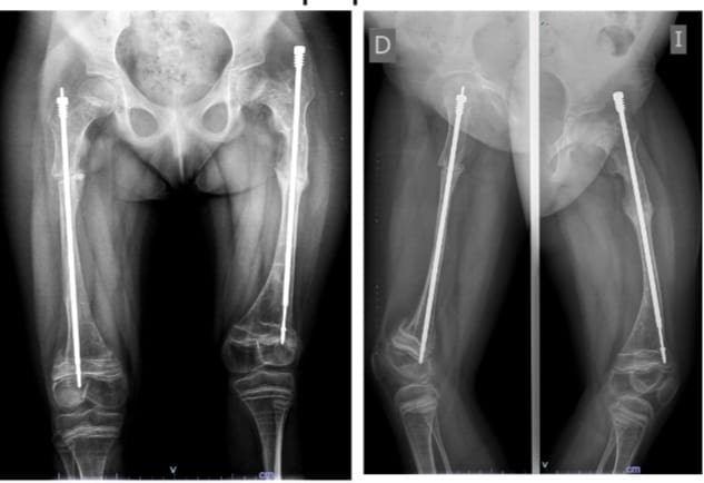 La primera paciente fue una pequeña de 5 años de edad que poseía una osteogénesis imperfecta de grado 3, una enfermedad invalidante que no le permitía caminar.