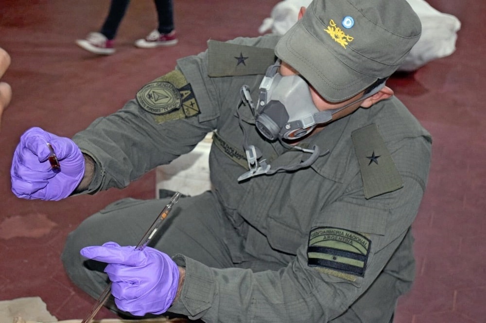 Según el informe, los efectivos percibieron un fuerte hedor nauseabundo, similar al del amoníaco, provenientes de un líquido que se encontraba en bidones plásticos que se derramaba sobre varias cajas.